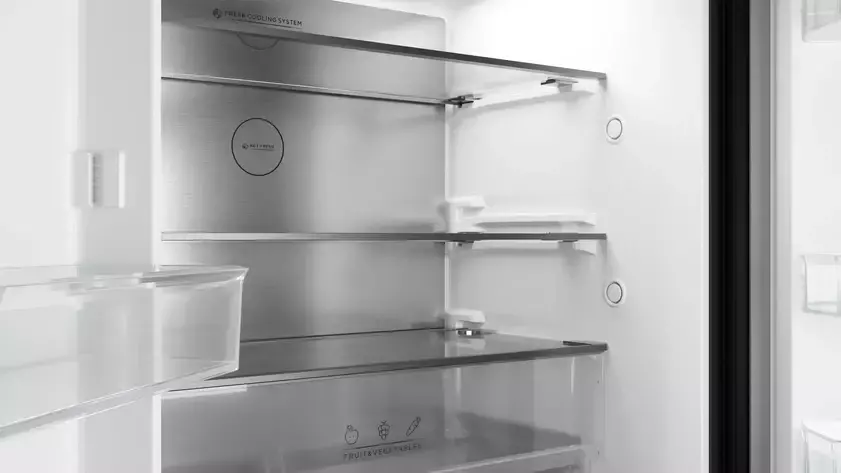 La tecnología MetalCooling, una “lámina metálica” en la parte trasera, mantiene el frío incluso al abrir y cerrar la puerta constantemente, debido a su gran conductividad térmica. Además, el aire frío pasa desde los laterales hasta la zona metálica de la parte trasera, para distribuir uniformemente el frío dentro del frigorífico. Todo ello se traduce en un menor consumo energético.